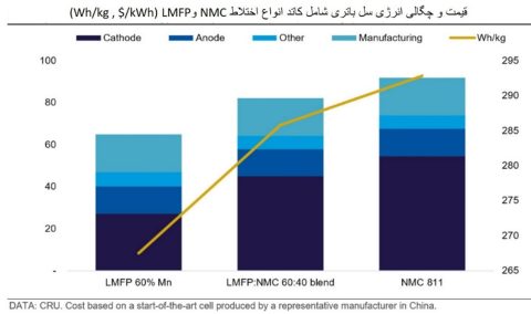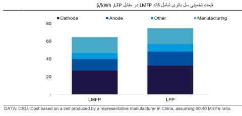 با کاتد LMFP در سلهای با اندازۀ بزرگ و با پیکربندیهای سل به بسته (Cell-to-Pack) و بهینهسازی فضای پک باتری، LMFP حتی میتواند با شیمیهای نیکل بالا رقابت کنند. بهعلاوه افزایش 20٪ در چگالی انرژی، کاهش 13٪ هزینه باتری بر اساس هر کیلووات ساعت را بههمراه خواهد داشت.