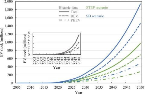 مطالعات بر اساس دو نوع تحلیل آژانس بین‌المللی انرژی (IEA) که تا سال 2030 انجام گرفته است دنبال می‌شود: سناریوی سیاست‌های بیان شده (STEP) که شامل سیاست‌های موجود دولت است و سناریوی توسعه پایدار (SD) است که با اهداف آب و هوایی توافق پاریس سازگار است این سناریو همچنین شامل هدف دستیابی به سهم فروش جهانی 30 درصدی خودروهای برقی تا سال 2030 است. بر اساس این تحلیل‌ها، خودروهای برقی تا سال 2030  حدود 14 درصد از کل خودروهای سبک را تشکیل خواهند داد. که از این تعداد 89 تا 166 میلیون از نوع BEVها و 46 تا 71 میلیون از نوع PHEVها هستند. اگر این تحلیل‌ها تا سال 2050، با فرض رشد منطقی امتداد داده شوند می‌توان نتیجه گرفت که بر اساس تحلیل STEP، تعداد خودروهای برقی با ضریب 72 درصد از سال‌های 2020 تا 2050 به حدود 1 میلیارد خودرو خواهد رسید و فروش سالانه این خودروها به 109 میلیون خودرو افزایش خواهد یافت. بر اساس تحلیل SD نیز موجودی خودروهای الکتریکی با ضریب 102 درصدی، از سال 2020 تا 2050 به 2 میلیارد وسیله نقلیه خواهد رسید و فروش سالانه آن‌ها به 211 میلیون خودرو افزایش خواهد یافت.